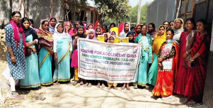 Nari Mukti Mahila Samity has working experience on Scheme for Adolescent Girls-Kanyashree Prakalpa (SAG-KP) Convergence Programme at Gangarampur & Tapan ICDS project area in Dakshin Dinajpur District. It is unique initiative to convergence SAG and Kanyashree Programme together in view of holistic development of adolescent girls from the age group of 11-18 years (both school going- going and out of school) to address their multi dimensional vulnerabilities in education, nutrition protection and health. This convergence programme is being implemented through ICDS cell.